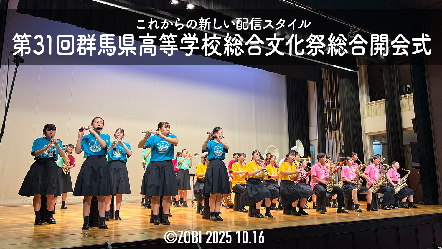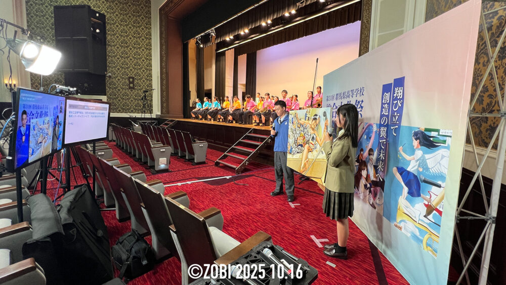 ZOBIエンタープライズでは、2025年10月16日(木)、群馬県庁前にある群馬会館2階ホールにて「第31回群馬県高等学校総合文化祭・総合開会式 〜翔び立て 創造の翼で未来へ〜 」を映像撮影・音響業務・YouTubeライブ配信を担当しました。