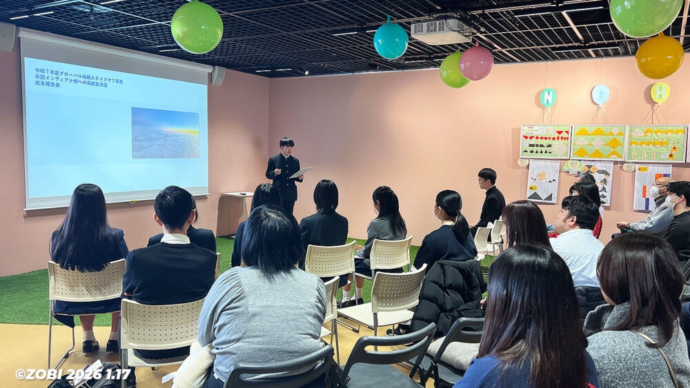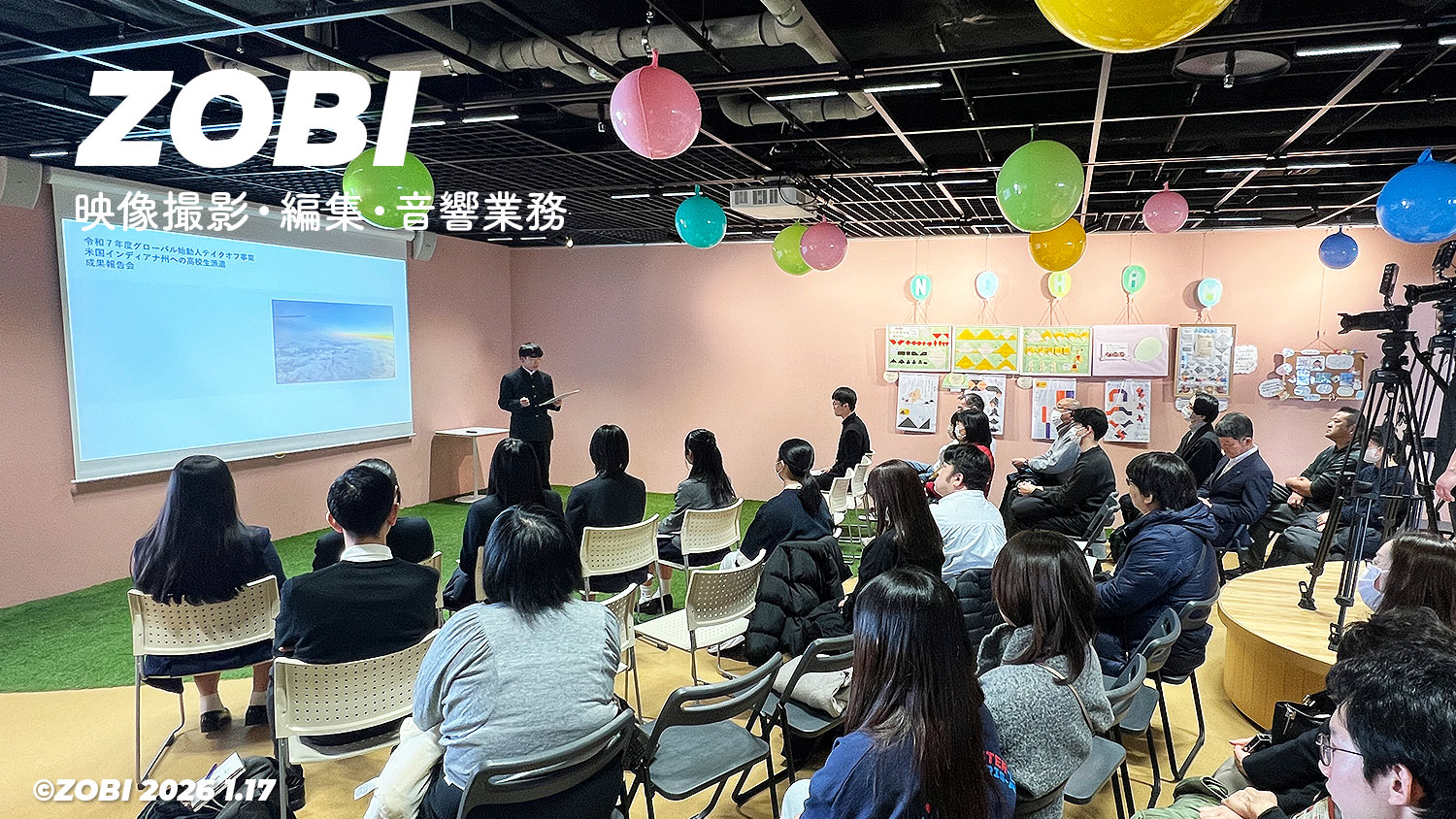 ZOBIエンタープライズでは、2026年1月17日(土)群馬県庁31階「GINGHAM(ギンガム)」にて、「令和7年度 グローバル始動人テイクオフ事業 〜米国インディアナ州への高校生派遣に係る成果報告会〜」の映像撮影・編集・音響業務を担当。