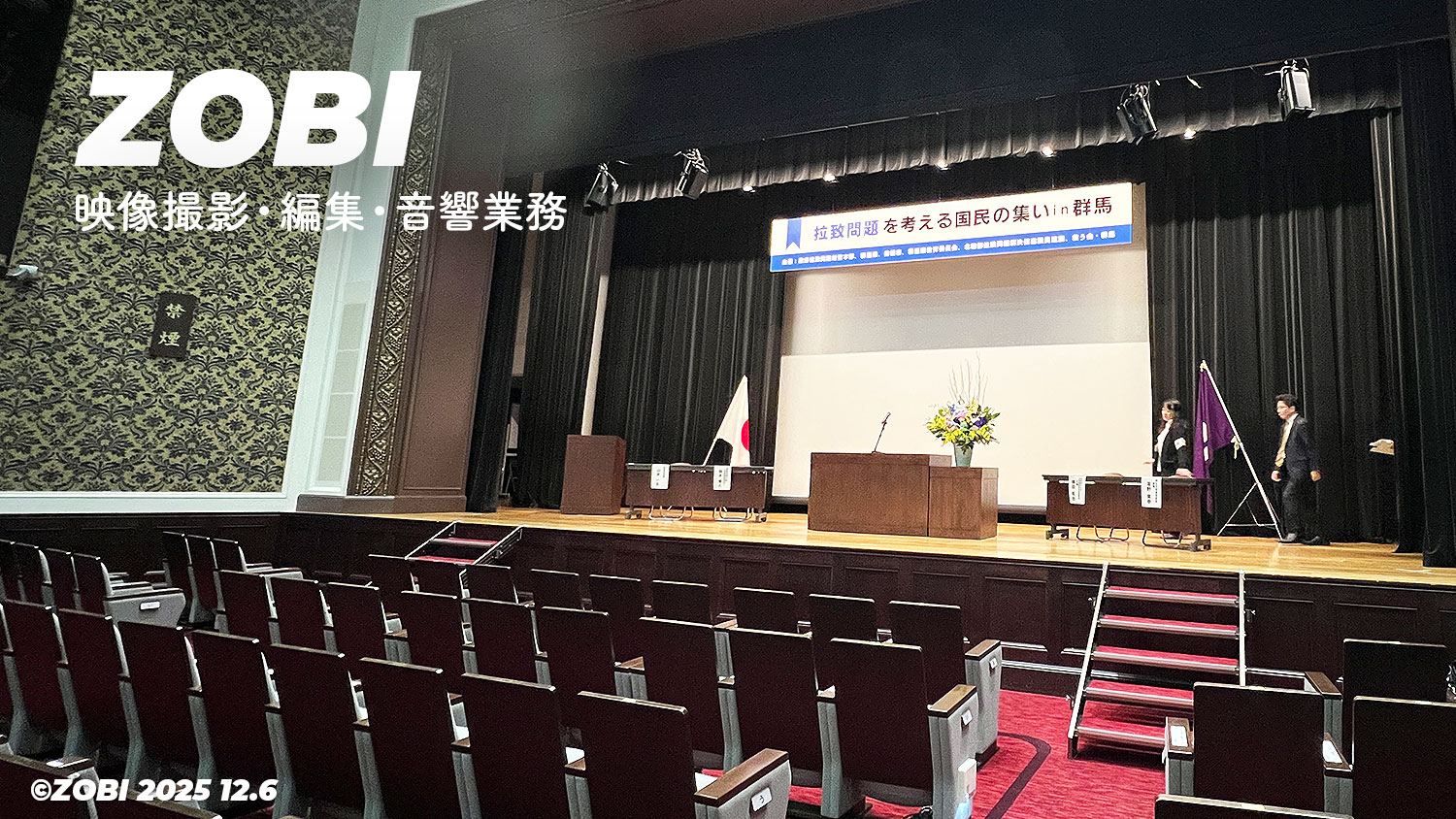 ZOBIエンタープライズでは、2025年12月6日(土)群馬会館2階ホールにて、「拉致問題を考える国民の集い in 群馬」のハイブリッドオンライン配信・映像撮影・音響業務を担当しました。